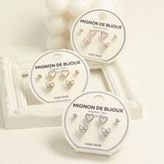 樹脂ピアスセット 6個 3ペア リボン ハート ビジュー【3color】