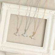 ネックレス リボン ビジュー 一石 キュービック【3color】